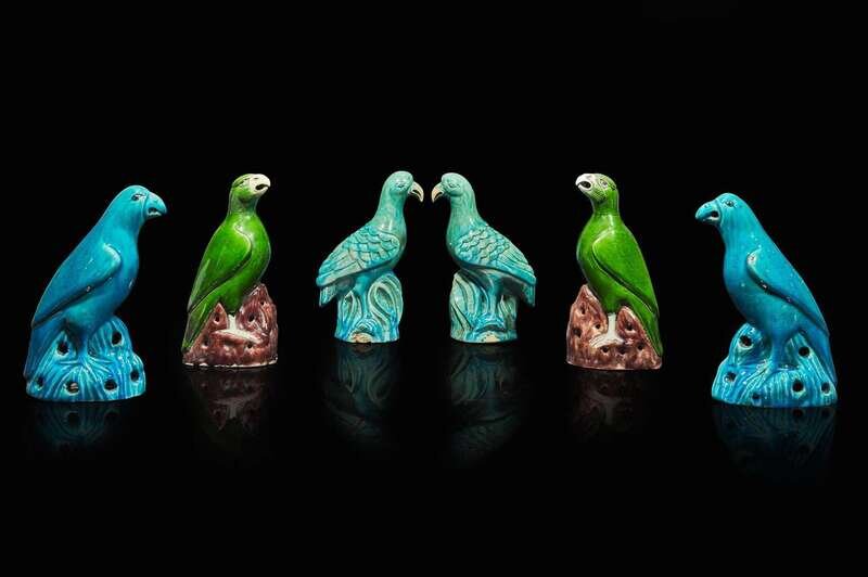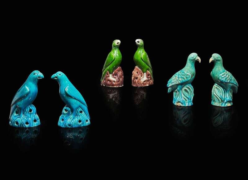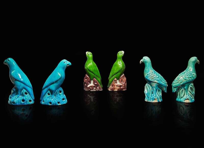Three pairs of Chinese export enameled porcelain birds 出口瓷塑鳥三對