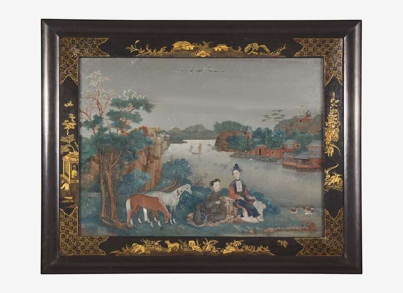 A finely-painted Chinese export reverse-painted mirror, circa 1750 出口彩繪鏡子 約1750