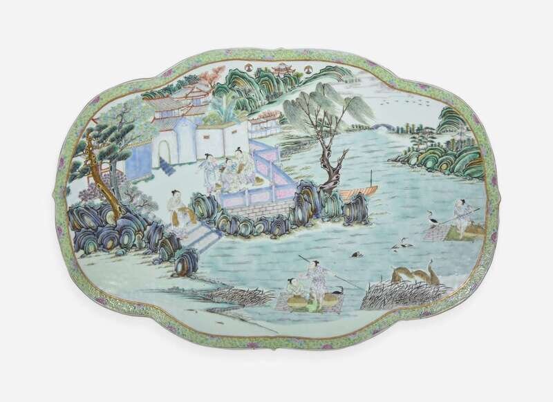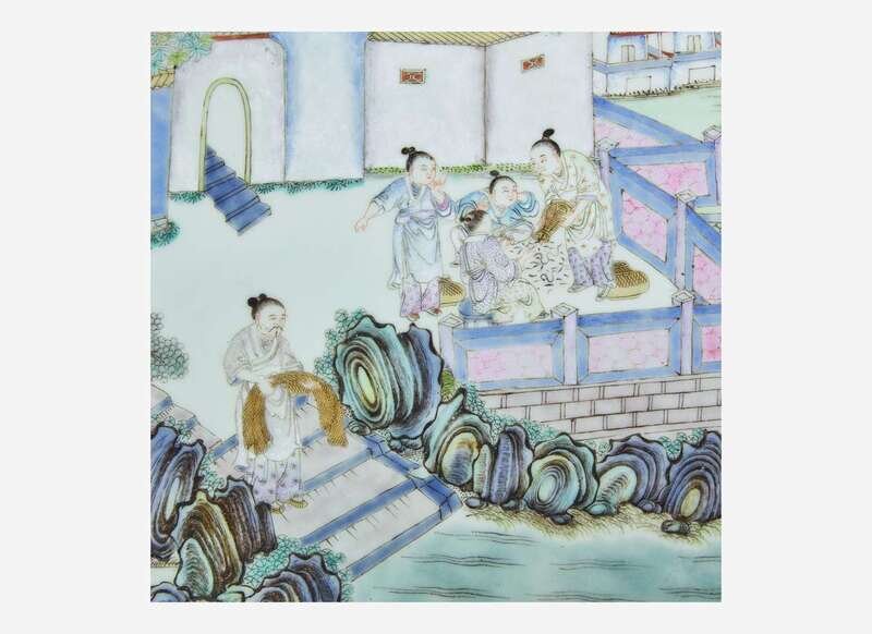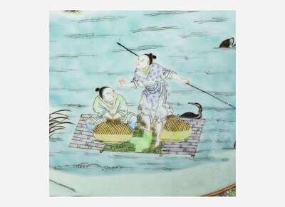 A Chinese famille rose-decorated "Fisherman" plaque 粉彩人物瓷板