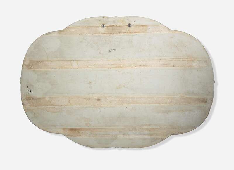 Finely decorated with multiple figures among extensive landscapes of pavilions, rockwork, greenery, and river, two groups of fishermen on rafts, a few attendants organizing fish in yards; all encircled by floral border; with two pierced holes to top.