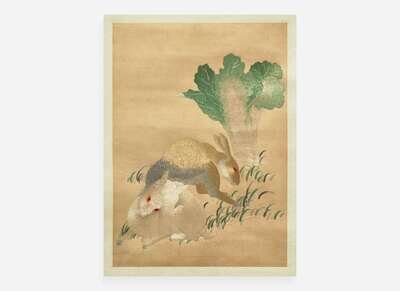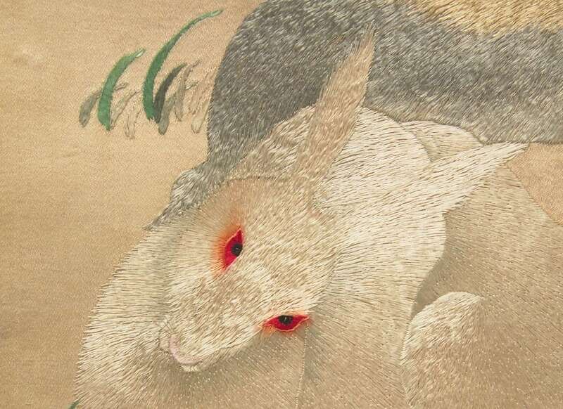 A Chinese embroidery depicting two rabbits and cabbage 刺繡小兔與白菜