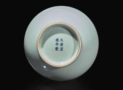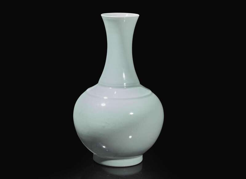 A Chinese "Claire de Lune" glazed bottle vase, Xuantong mark and possibly of the period 天藍釉賞瓶 宣統款 或清宣統