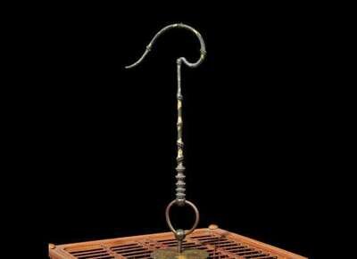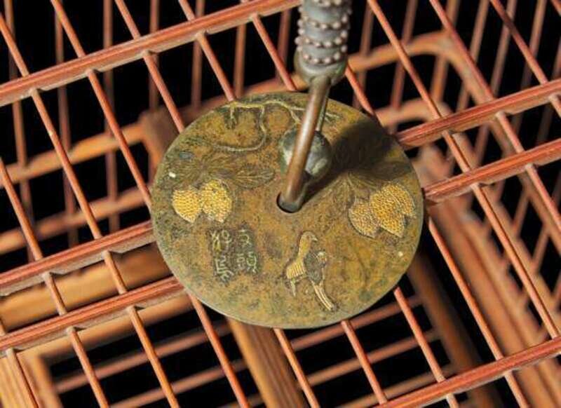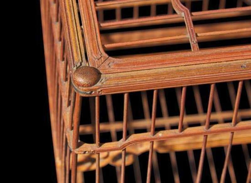 A finely executed Chinese bamboo birdcage and gold-splashed bronze hanger 精巧鳥籠及灑金銅鉤