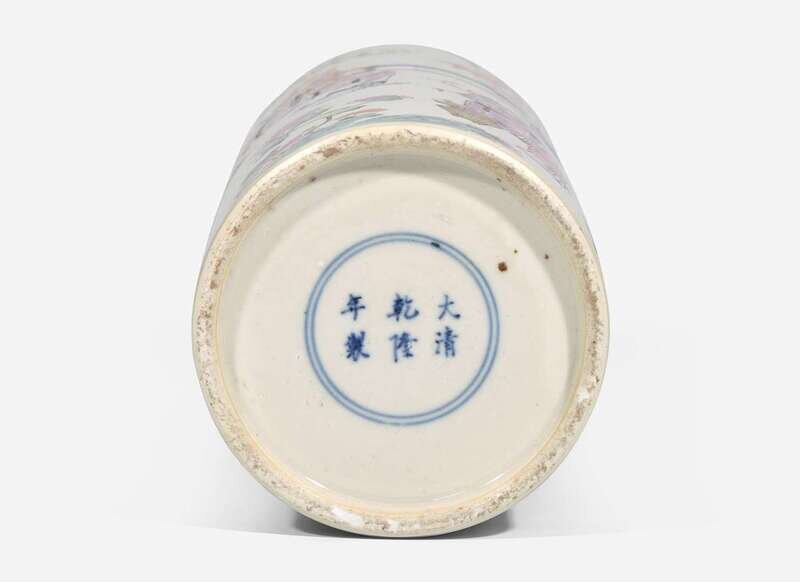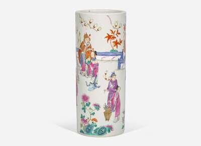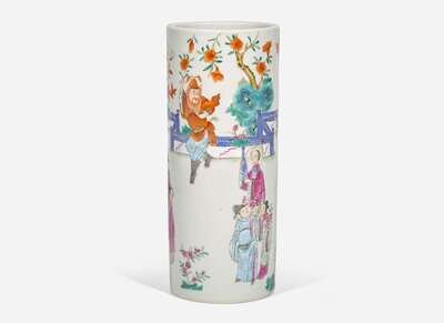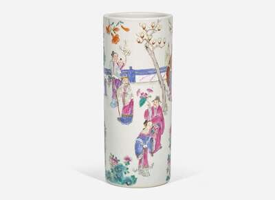 A Chinese famille rose-decorated cylindrical vase 粉彩花樽