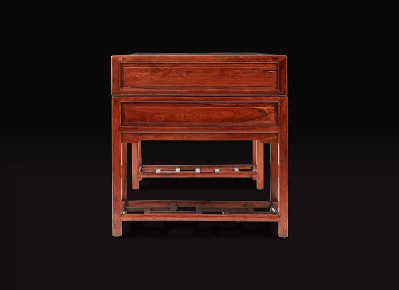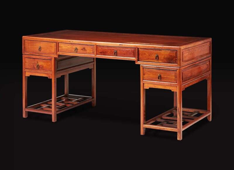 A huanghuali and mixed hardwoods double-pedestal desk 黃花梨及硬木桌一件