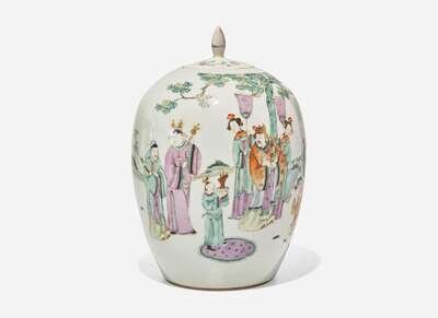 A Chinese famille-rose decorated ovoid jar and cover, 19th to 20th century 粉彩將軍蓋罐 十九或二十世紀