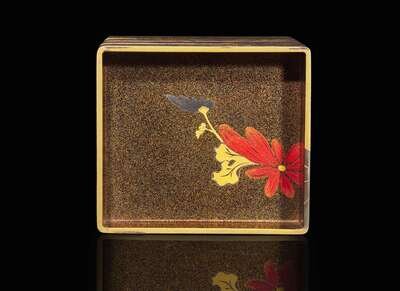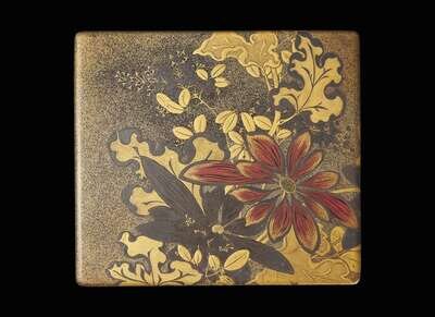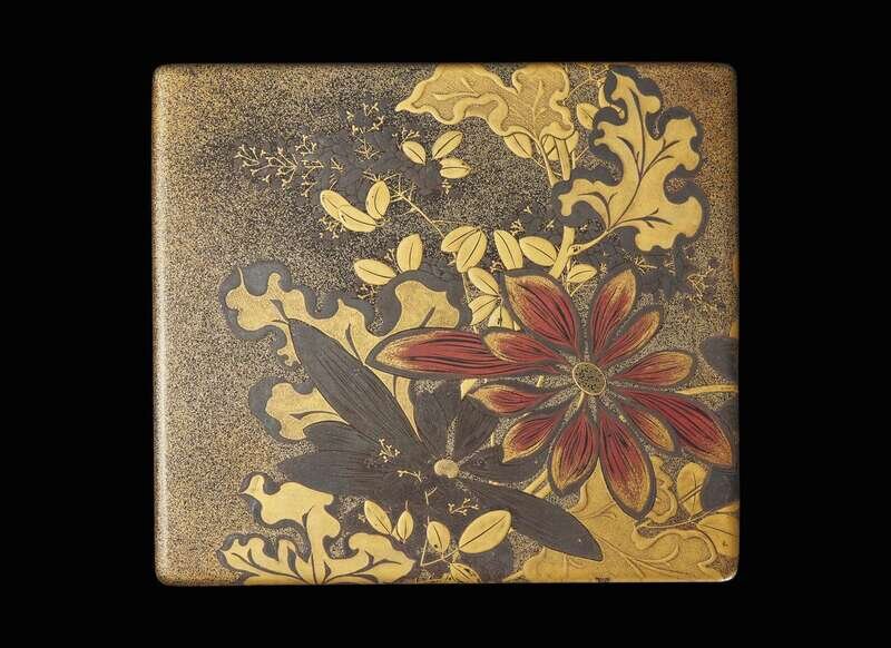 Overall embellished with gold, red and silver hiramaki-e flowers and foliage, nashiji to the interiors