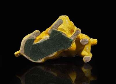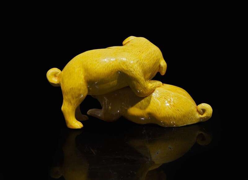 A Japanese yellow-glazed porcelain "Puppies Playing" group, possibly Hirado, 19th/early 20th century 日本黃釉瓷小狗 可能為平戶 十九至二十世紀早