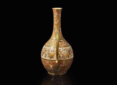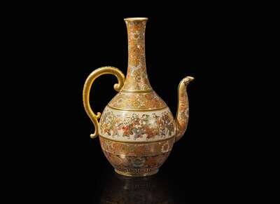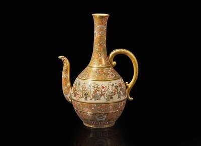 A finely decorated Satsuma-type ewer, signed Shizan, Meiji period 薩摩燒式執壺 司山製款 明治