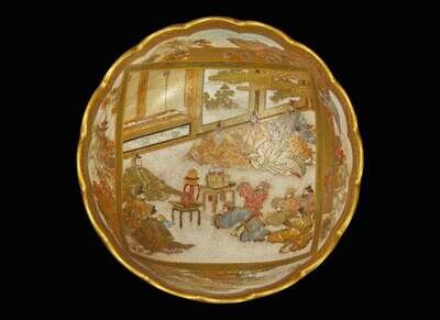 A small, finely-decorated Satsuma-type bowl, signed, Meiji period 薩摩燒式小碗 富士山製款 明治