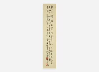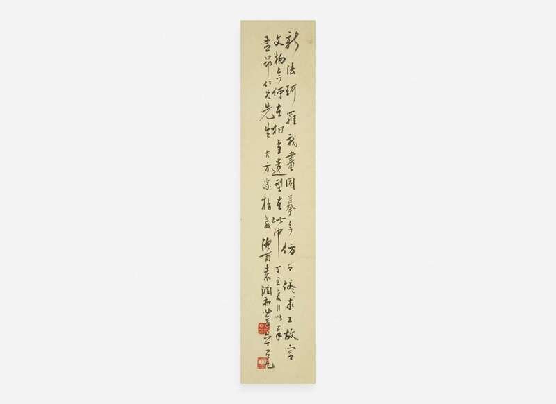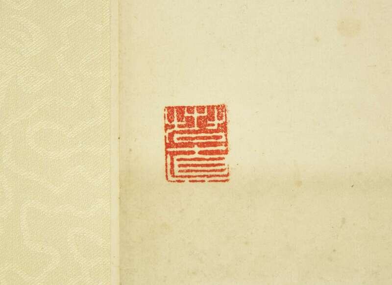 inscribed and with two seals upper right, another seal lower left, mounted as a hanging scroll