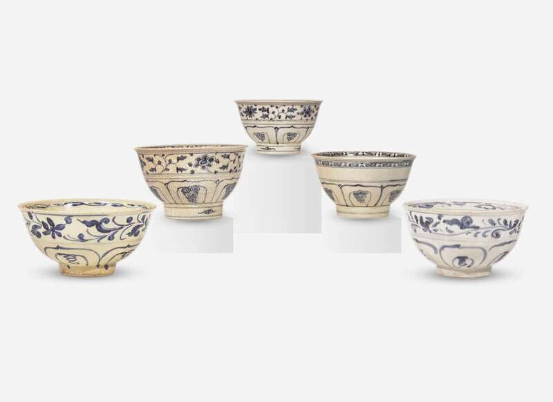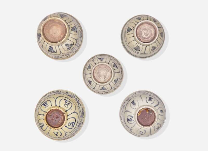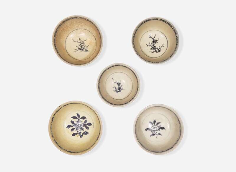 Five Vietnamese blue and white bowls, Le dynasty 15th-16th century 越南青花瓷一組五件 後黎朝 十五或十六世紀