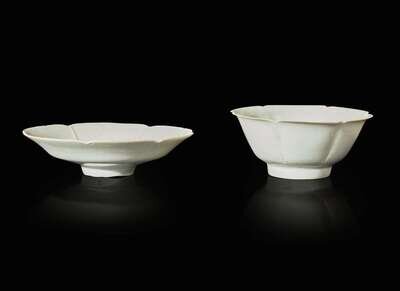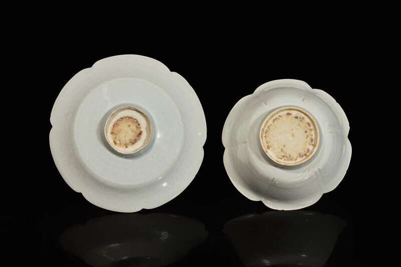 Two Chinese qingbai hexafoil small dishes, Song/Yuan dynasty 六瓣湖田窯小碟兩件 宋或元