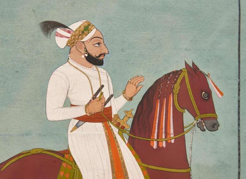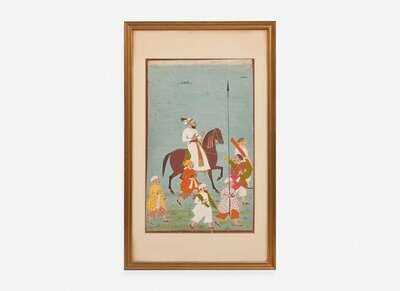 Indian School, possibly Mewar, 18th/19th century, Mounted Prince with Attendants 印度畫 十八或十九世紀