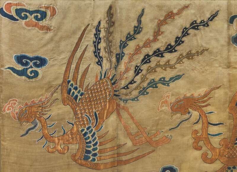 A very large Chinese woven silk "Phoenix" panel, 17th/18th century or earlier 鳳紋刺繡 十七十八世紀或更早