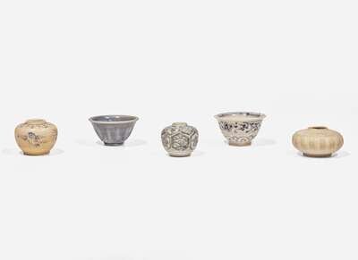 Two Vietnamese miniature bowls and three jarlets, Le dynasty, 15th-16th century 越南袖珍瓷器五件 後黎朝 十五或十六世紀