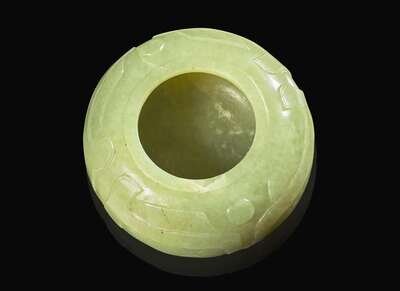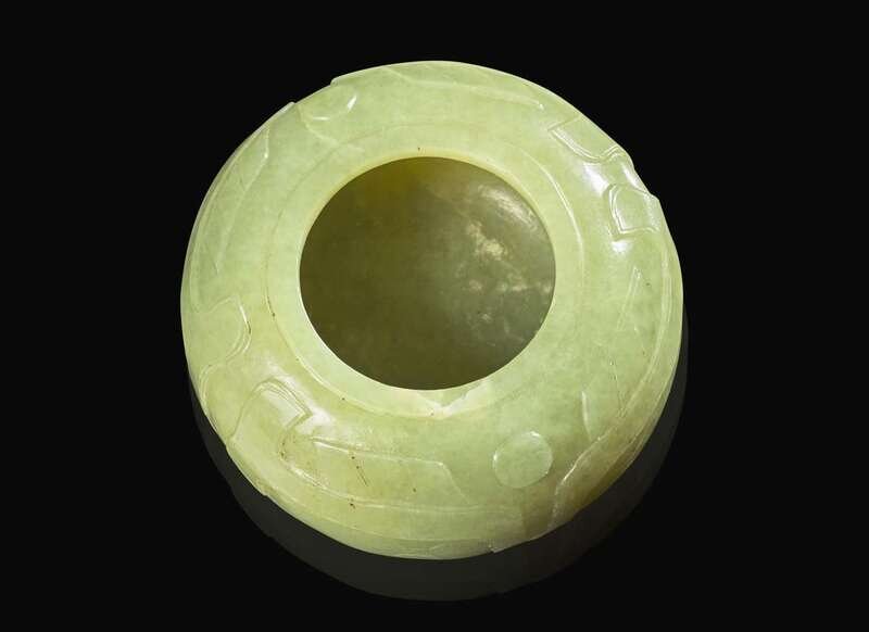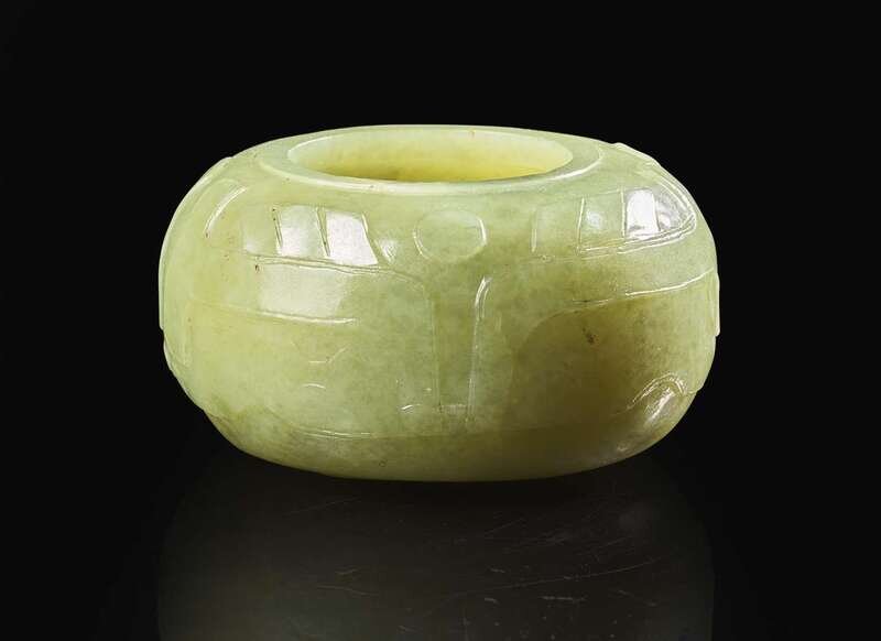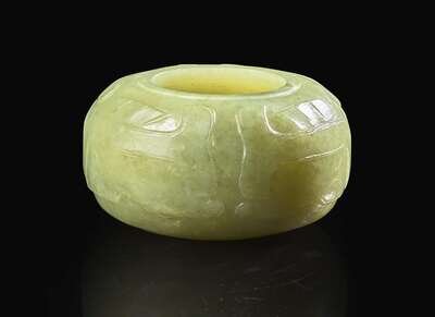 A Chinese carved greenish-yellow jade archaistic coupe Qing dynasty, 18th/19th century 倣古青黃玉水丞 清 十八或十九世紀