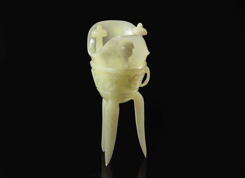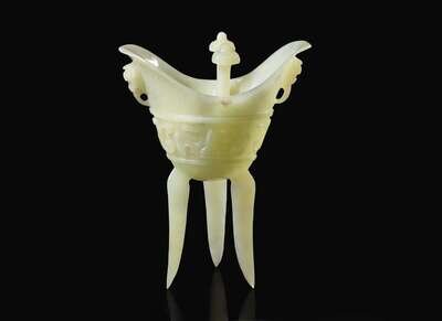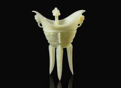 A Chinese archaistic carved hardstone libation vessel, Jue 硬石質復古爵杯