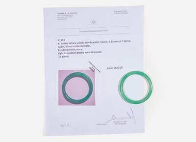 Of light apple-green tone and good translucency, accompanied by a certificate from Wardell & Co. Jewelers, Knoxville, Tennessee, describing the jadeite as type A natural jadeite