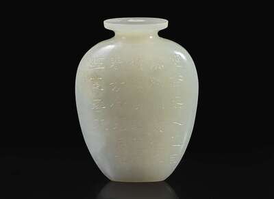 A Chinese pale celadon jade snuff bottle with Imperial poem 御題詩青白玉鼻煙壺