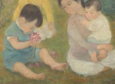Lê Thị Lựu (Vietnamese, 1911-1988), Mother and Children in Landscape