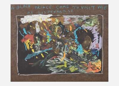 Signed and dated 66-68 bottom right, titled top center, oil pastel on paper.