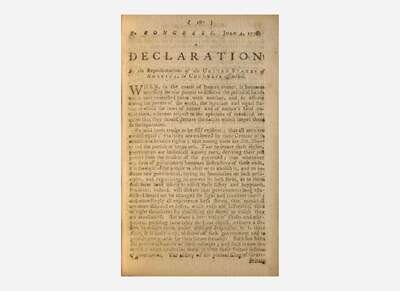 Second edition of the authorized printing of America’s founding documents, including the first collected state constitutions, the Declaration of Independence, the Articles of Confederation, and the Treaty of Amity and Commerce and the Treaty of Alliance with France. First published by an order of Congress in 1781 in Philadelphia in an edition of only 200 copies.
