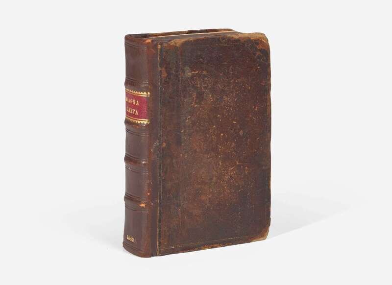 Scarce early English-language edition of the Magna Carta. This is the first edition of the Magna Carta published by English printer Thomas Petyt (Petit), and the third English translation, executed by George Ferrer. Ferrer’s translation first appeared in Robert Redman’s 1534 edition—the first complete printed English translation—(see lot 102), and was revised and reprinted in 1541 by his widow, Elizabeth Redman to correct several grammatical and printer’s errors. That was followed with this corrected edition, in 1542, with Petyt stating that a “great deal of care” had been taken to correct the text. Along with the 1541 edition, Petyt expanded the contents and arranged the statutes chronologically. It is the last English-language edition printed in the 16th-century.