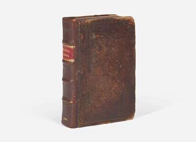 (London: Thomas Petyt, 1542). Third English-language edition. 8vo, 5 1/2 x 3 1/2 in. (140 x 89 mm). (iv), ccix (but 211, some leaves misnumbered), 4 l.; lacking final blank leaf (Dd8). Title-page printed within woodcut border and with woodcut initials. Full contemporary brown calf, rebacked, red morocco spine label, stamped in gilt, extremities and boards rubbed and worn; edges stained red; title-page backed and mounted (previous cataloguer states it was supplied from another copy); gutter split at leaf viii, with signature proud and with leaf viii starting; scattered light spotting to text; bookseller’s ticket at bottom of front paste-down. Beale S-13; ESTC S101057