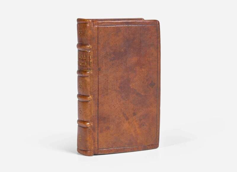 (London: Richard Tottell, the 8. Day of Marche), 1576. Early edition. 8vo, 4 1/2 x 2 9/16 in. (114 x 65 mm). (8), 247, (1) l. Text printed in Latin, Law French, and in English; two tables of statutes at front, and illustrated historiated woodcut initials. Period-style full brown calf, stamped in blind and in gilt; edges stained black; title-page slightly darkened and worn, and with contemporary inscriptions on recto and verso and with contemporary female ownership signature of Jane Saunderson on recto of same; text trimmed closed, affecting some leaf numbers, catchwords, and signatures, and just touching some text in fore-edges; fore-edge of A1 shaved close and affecting some letters; scattered marginalia, some trimmed; Saunderson ownership signature on recto of rear blank. Beale S-19; ESTC S92154