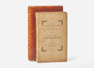 Chiswick: From the Press of C. Whittingham (for Robert Triphook), 1820. First edition thus (one of only 230 copies printed). 12mo. xl, 105, (1) pp. From the library of Elizabeth Barrett Browning and signed and dated with her maiden name at top of title-page ("Elizabeth Barrett Barrett 1842"). Original drab paper-covered boards, printed in black, front board detached, spine worn and chipped; all edges trimmed; modern gift inscription on title-page below Browning's signature; in brown morocco lift off case and cloth chemise. Kelley, The Browning Collections A1544