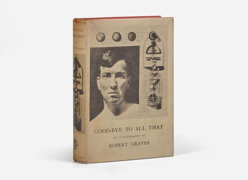 London: Jonathan Cape, (1929). First edition, first state (with the later suppressed passages printed on p. 290 and pp. 341-343). 8vo. 448 pp. With frontispiece portrait of Graves and seven illustrations. Publisher's salmon-pink cloth, stamped in gilt, light wear to spine ends; all edges trimmed; in original illustrated dust-jacket, designed by Len Lye, small chipping to spine panel ends.
