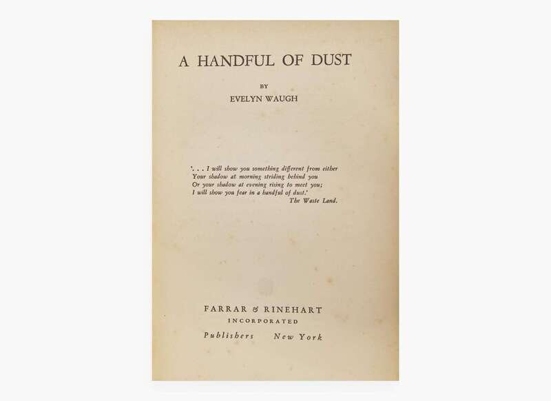 New York: Farrar & Rinehart, (1934). First American edition. 8vo. (viii), 308 pp. From the library of Ernest Hemingway, with his inscription on front free endpaper, “Ernest Hemingway his book now Dick Armstrongs' ” Publisher's orange cloth, stamped in blind and in gilt; top edge stained green, other edges trimmed; scattered light foxing to text; in original illustrated dust-jacket, loss at top and bottom of spine, other scattered small chips at folds; panels darkened with scattered soiling; in full brown morocco solander box.