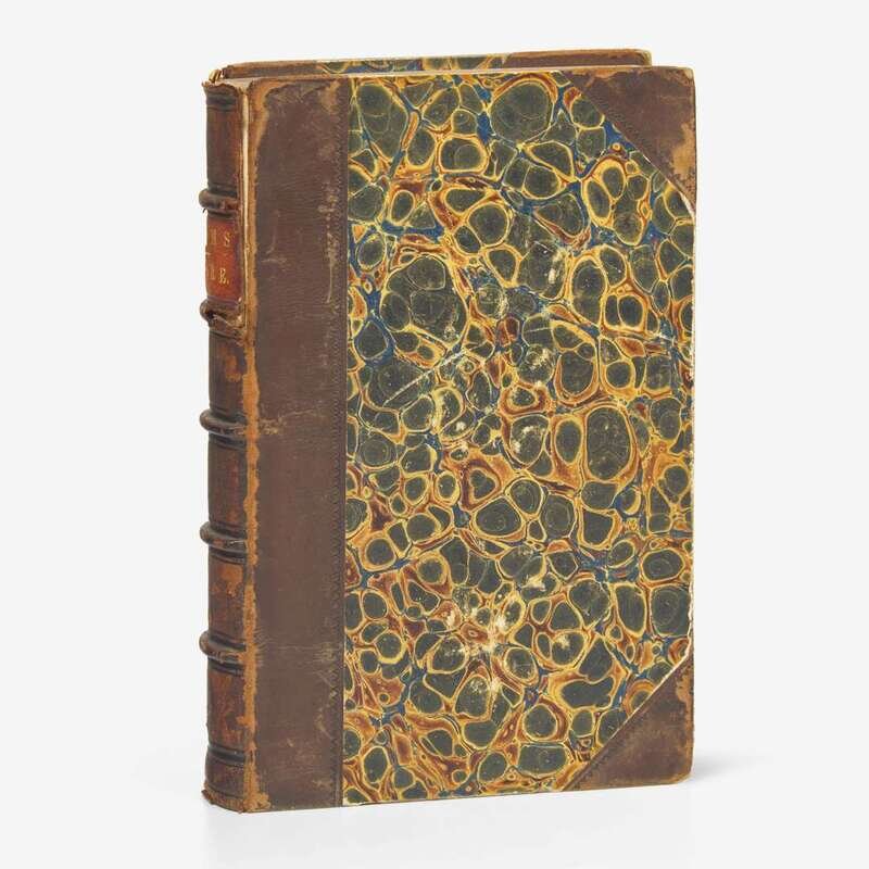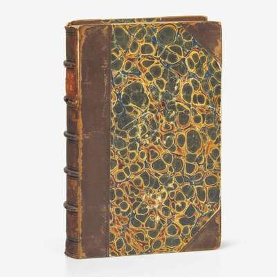 New York: Bartlett & Welford, 1844. First edition. 8vo. 216 pp. Presentation copy, inscribed by Moore on half-title to the Rev. Dr. Samuel Farmar Jarvis: “The Rev. Dr. Jarvis, / With the respects / of the author.” Contemporary three-quarter brown calf over marbled paper-covered boards, stamped in blind; orange morocco spine label, stamped in gilt, left half chipped away; boards, joints and extremities rubbed; upper portion of spine starting; chip in head of same; speckled edges; brown endpapers; scattered soiling to text; residue on rear free endpapers; small bookseller's ticket at bottom of rear paste-down. BAL 14348; Grolier, American 52