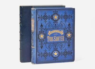 Hartford, etc: The American Publishing Company, 1876. First American edition, first printing (printed on wove paper with half-title and frontispiece printed on separate leaves, “The” in half-title measuring 1/16 in. high). Square 8vo. xvi, (17)-274, (2), (4) (ads) pp.; with triple flyleaves at front and back. Illustrated with a wood-engraved frontispiece and numerous in-text illustrations by True Williams and others. Publisher's blue cloth-covered boards, elaborately stamped in black and in gilt, spine ends lightly worn, corners moderately worn, boards and spine slightly faded, scattered light soiling to same; all edges trimmed; brown-yellow endpapers; gutter split at half-title, with half-title starting; pp. 135-156 slightly proud; contemporary gift inscription on first flyleaf; small contemporary bookseller's ticket in top corner of front paste-down; small bookseller's ticket at bottom of rear paste-down; scattered spotting to text; scattered small and faint dampstaining in fore-edge and top corner of leaves at rear; in quarter blue morocco slip case and chemise. Book-plate of William E. Simon and Carol Simon on interior front flap of chemise. BAL 3369; Johnson, pp. 27-30; Grolier, American 100 79; Peter Parley to Penrod 43