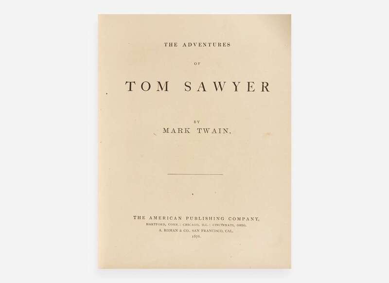 A handsome and unsophisticated first American edition, first printing of Mark Twain's classic semi-autobiographical story of boyhood. The first novel by Twain written without a co-author, Tom Sawyer followed the first English edition by six months. Along with Huckleberry Finn, "these books let fresh air into the minds of parents who had shut the door on their own childhood, and they will be classics the world over as long as there are boys.” (Grolier)