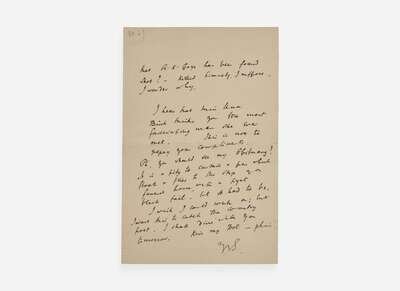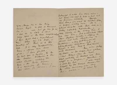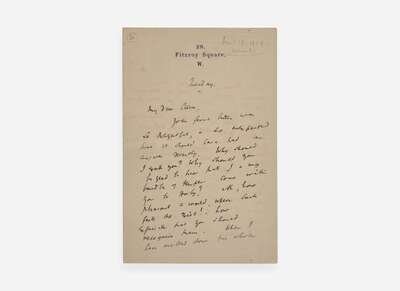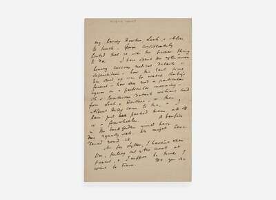 An early and affectionate letter from Virginia Woolf to her fellow Bloomsbury Group member, confidant, and husband of her sister Vanessa, Clive Bell. Opening with a flirtatious response to Clive's romantic overtures, Woolf writes, "when I have melted down the whole of my illusions, one or two things remain, bright as gold, or diamond. One is--well, that you care for me, and that we are likely to spend many years in the same neighborhood." She then recounts in often amusing detail her "sepulchral day" attending her aunt Caroline Emilia Stephens's (1834-1909) burial service. Caroline, nicknamed by the Stephen family "The Quaker" or "Nun", was a respected Quaker and author on Quakerism, and the younger sister of Woolf's father, Leslie Stephen. An independent spirit, Caroline was an early role model for Virginia in her formative years, and bequeathed Virginia in her will an inheritance that contributed to her financial and social independence.