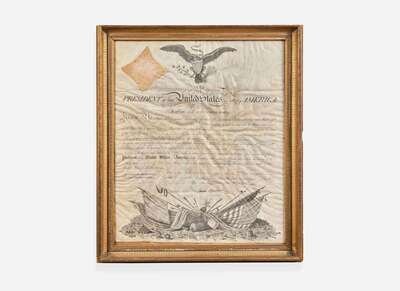 A handsome military commission issued during the War of 1812 to "one of the prominent American military leaders of the Antebellum period" (Daniel T. Campbell, William Linnard: Soldier, Carpenter, Artisan, and Rare Public Servant). Colonel William Linnard (1749-1835) was a Philadelphia-born master builder and skilled artisan who served during the American Revolution as a Captain of the Pennsylvania Artillery Company Militia. He fought in the Battles of Brandywine and Germantown, during the latter he is noted to have placed a cannon at the mouth of the Wissahickon Creek and fired at invading Hessian troops. In 1782 he was elected to The Carpenters' Company and served as Warden in 1787 and Vice-President from 1806 until 1813. Also in 1806 he became one of the directors of the Philadelphia Domestic Society, a corporation for processing raw materials into textiles. He was elected for two terms to the Pennsylvania State Assembly representing Philadelphia, in 1797 and in 1800. An ardent supporter of Thomas Jefferson, during Jefferson's presidency he was appointed military agent for the Middle Department, tasked with providing provisions for the army's numerous outposts throughout most of the country, and was instrumental in outfitting Lewis and Clark's expedition across the newly acquired Louisiana Purchase. His success in this position led to him being appointed, as can be seen here, to the newly reinstated role of Quartermaster General, a position he continued to hold until his death, in 1835. A devoted Presbyterian, he was a trustee and longtime treasurer of Old Pine Street Presbyterian Church, where he is now buried.