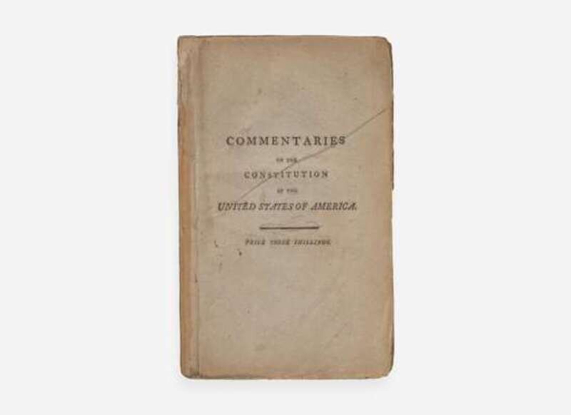 London: Printed for J. Debrett, J. Johnson, and J.S. Jordan, 1792. First English edition. 8vo. 147, (3) pp.; including half-title and errata, but with the index removed (as sometime found). Disbound, remnants of previous binding along spine, repair in upper gutter of half-title; small hole in bottom margin, pp. 5/6; small chipping and light wear along edges; loss in top corner of final leaf, not affecting text; two short closed tears in top edge, pp. 47/48; closed tear in upper fore-edge, pp. 97/98. With the ownership signature of John Meredith Read III, dated Albany, 1896 at head of title-page. In brown cloth fall-down-back box. Sabin 104627; Ford, Pamphlets on the Constitution 91; ESTC T138356; Not in Howes
