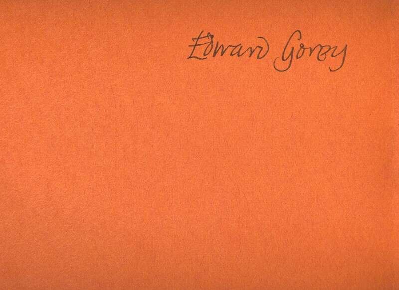 No place, The Fantod Press, 1964. First and limited edition, one of 500 copies, signed by Gorey on verso of front wrapper. Oblong 64mo. Unpaginated. Stiff orange illustrated wrappers. Toledano A16a