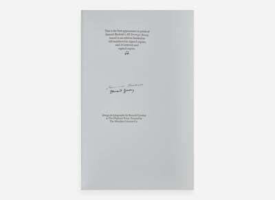Fine copy of a scarce Gorey publication, and the first of his two collaborations with Irish novelist Samuel Beckett. This was followed by Beginning to End (see Lot 87), published in 1988.