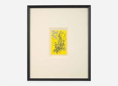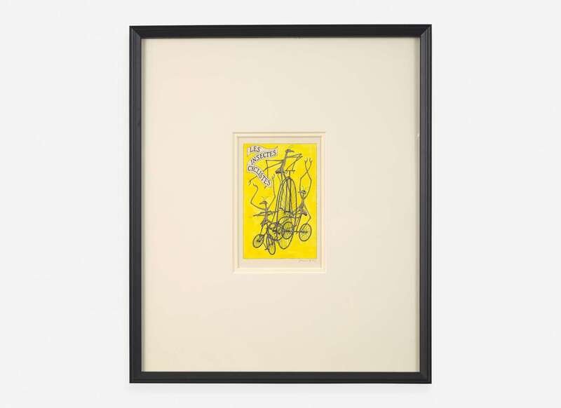 A wonderful and fine original illustration by Edward Gorey, used for his humorous bicycling postcards that make up his work, The Broken Spoke. This illustration, Les Insectes Cyclistes, first appeared in the June 14, 1976 Sport's Illustrated article of the same name. It subsequently appears as the 27th illustration in the book-form edition that appeared later that same year. See lot 71 for a study of this work.