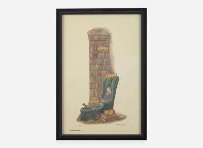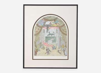 (New York: Gotham Book Mart, ca. 1996). Limited edition print, signed by Gorey. 750 copies were produced and numbered 1-750, as well as 26 lettered copies, this copy marked “VII.” 11 1/2 x 7 1/2 (sight) (292 x 241 mm). In frame, 13 x 9 in. (330 x 228 mm). Toledano p. 161