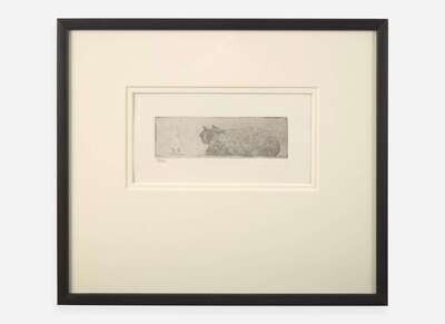 No place, no date. Limited edition etching, #12/50, with Gorey's embossed signature. Black and white. 8 x 4 1/2 in. (215 x 114 mm). In frame, 13 x 14 1/2 (330 x 365 mm). Toledano p. 162