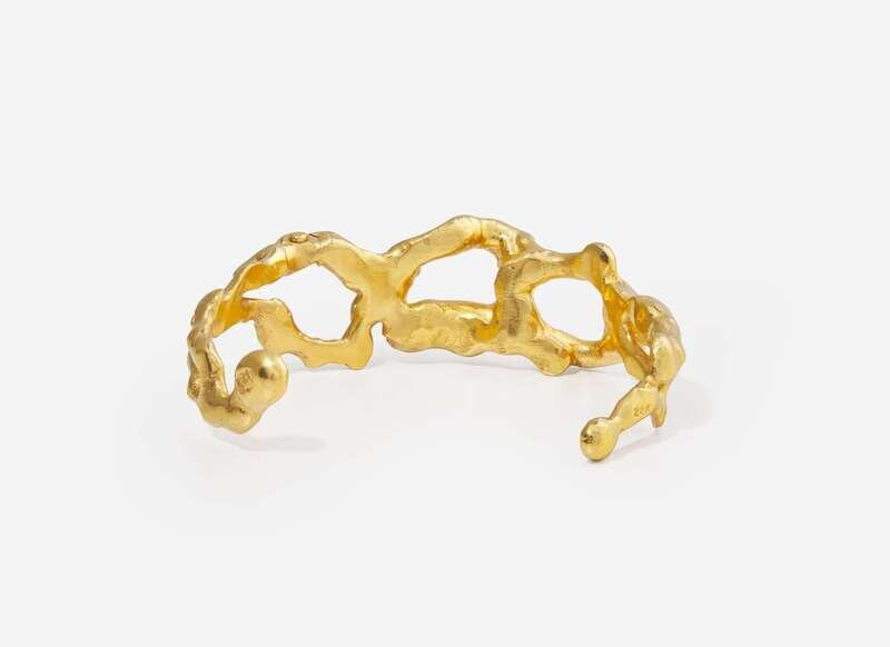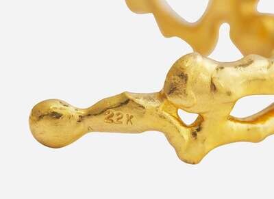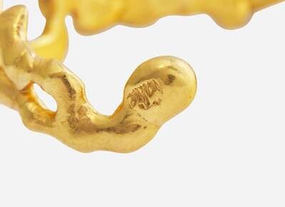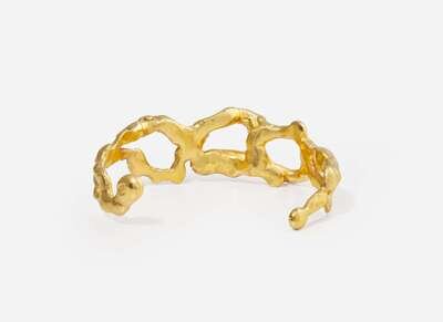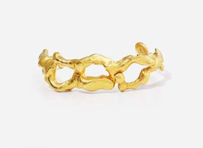 A 22K yellow gold cuff bracelet by prominent artist duo Jean Mahie, designed as an open cuff abstractly designed as amorphous thick openwork loops of tapering yellow gold.