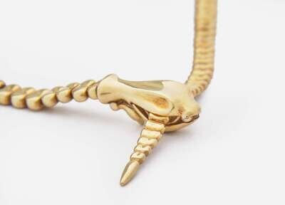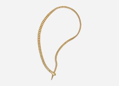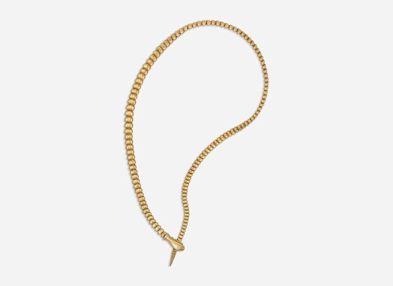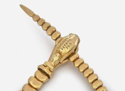 An 18K yellow gold suite by Elsa Peretti for Tiffany & Co. including an adjustable necklace designed as a snake biting its tail, with matching snake-like earrings suitable for pierced ears on stud posts with butterfly earring backs.