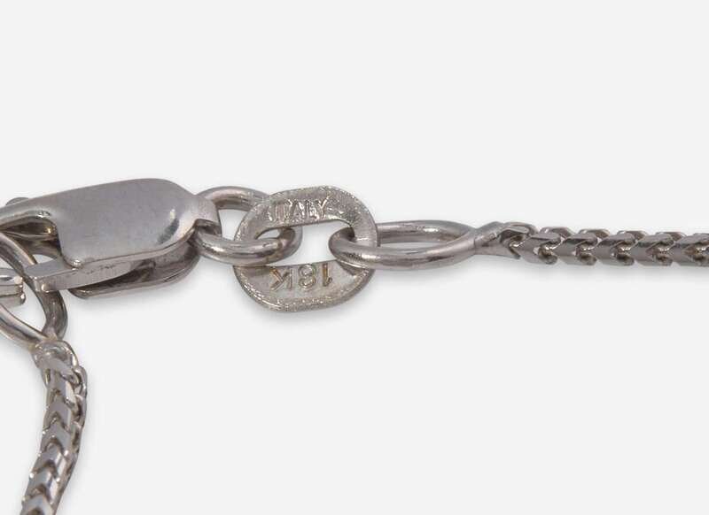 Overall Condition: Minute scratches and signs of wear, clasp stamped “18K ITALY 750”, pendant stamped “18K 750 d3.56”, clasp in working order.