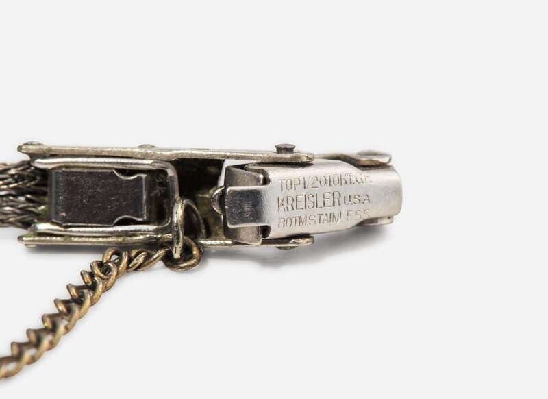 Overall Condition: Scratches and wear to metal, watch currently running when wound and appears to be keeping time, blue pitting and damage to dial, may require additional cleaning, some fraying to bracelet, clasp in working order, dial reads “INTERNATIONAL”, bracelet clasp stamped “TOP 1 / 2010KT.GF. KREISLER U.S.A. BOTMSTAINLESS”.