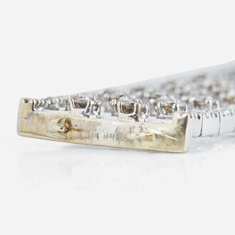 Overall Condition: Light scratches and wear to metal, clasp is somewhat loose but is in working order, stamped “18K” with maker's mark, testing as 18K gold and platinum.
