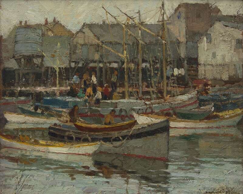 Frederick J. Mulhaupt (American, 1871-1938) - Grey Day and Guinea Boats, Gloucester